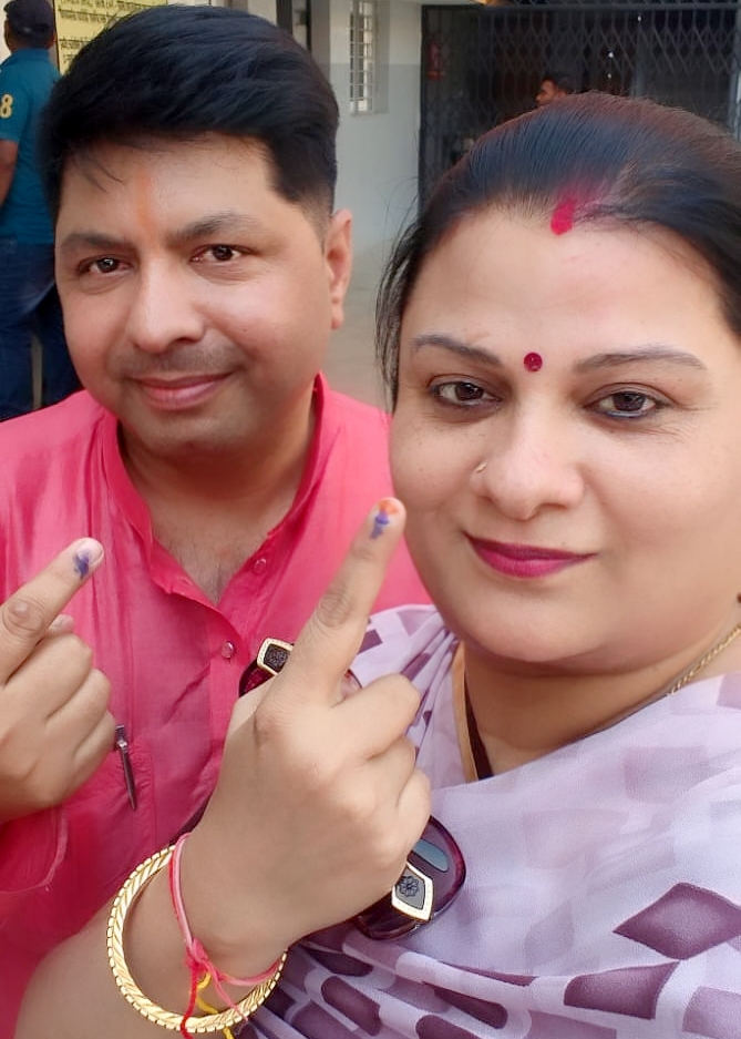 NOW HINDUSTAN korba आयुष मेडिकल एसोसिएशन के अध्यक्ष डॉ.नागेंद्र नारायण शर्मा ने अपनी धर्मपत्नी श्रीमती प्रतिभा शर्मा के साथ किया मतदान। इस अवसर पर डॉ.नागेंद्र नारायण शर्मा ने कहा की मतदान सिर्फ हमारा अधिकार ही नहीं अपितु कर्तव्य भी है। भारतीय संविधान ने सभीको वोट की सबसे बड़ी ताकत दी है। इसका उपयोग जरूर करें। लोकतंत्र के इस महापर्व पर हम सबको अपने मताधिकार का प्रयोग कर अपने कर्तव्य का अवश्य निर्वहन करना चाहिये।