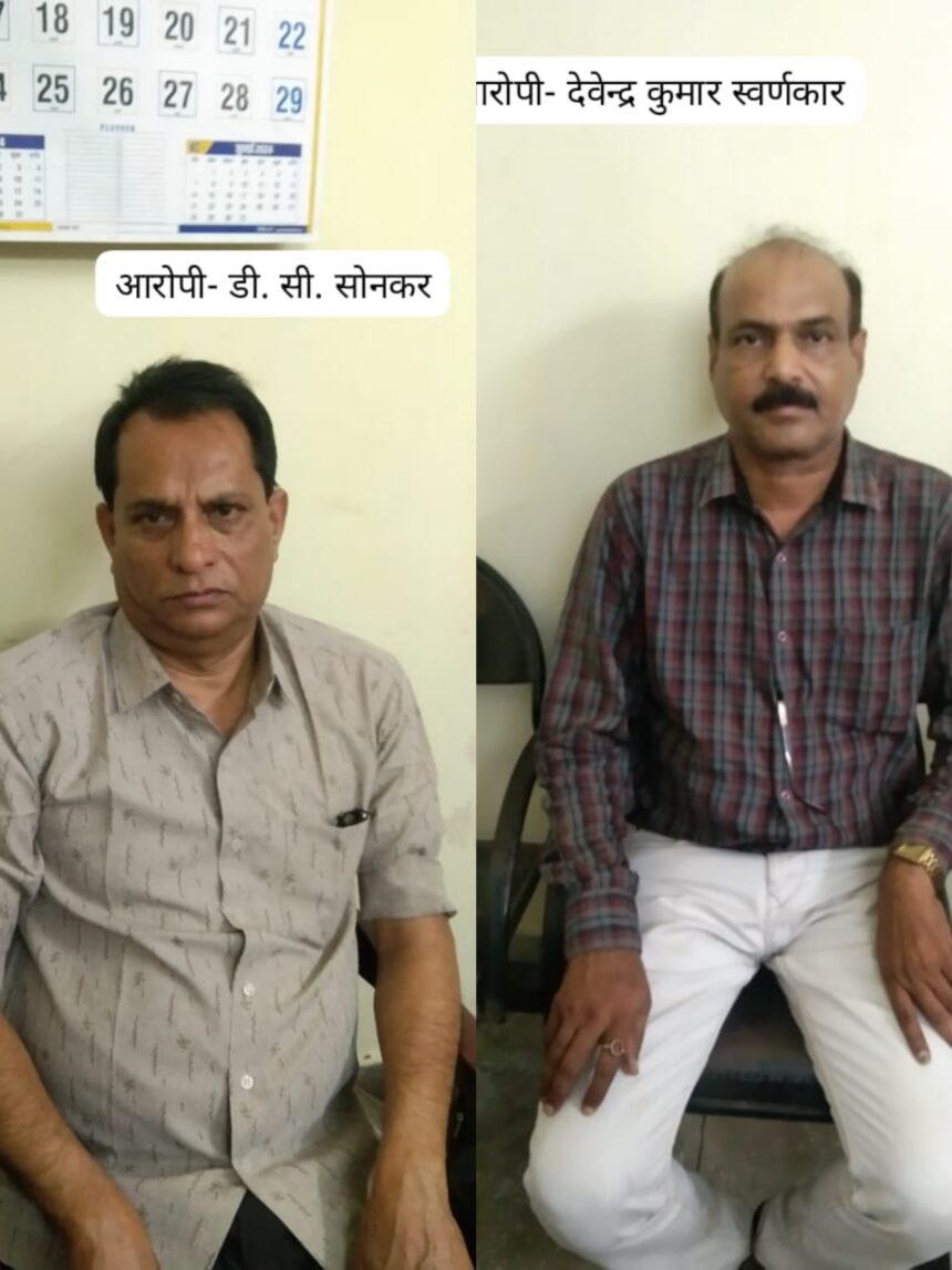 NOW HINDUSTAN korba घटना का विवरन—— अरोपी डी.सी. सोनकर ने नगर निगम क्षेत्र कोरबा में प्रार्थी ठेकेदार द्वारा निर्माण कार्य से सम्बंधित उपयोग भुगतान किए गए रनिंग बिल व फाइनल बिल की राशि करीब 21 लाख रुपये में से 2 प्रतिशत कमीशन की मांग की गई थी जो कुल 42000 रुपये होती थी…प्रार्थी द्वारा इस बात की शिकायत एसीबी बिलासपुर में की गई है किए जाने पे शिकायत का सत्यपन कराए जाने पे अरोपी सोनकर द्वार 42000 की जगह 35000 रुपये लेने हेतु सहमती दी गई जिसपर जाल की योजना बन गई..आज दिनांक 18.6.24को प्रार्थी जब अरोपी सोनकर को रिश्वत रकम 35000 रुपये देने निगम कार्यालय कोरबा गया तो अरोपी सोनकर ने अपने सब इंजीनियर देवेंद्र स्वर्णकार को दर्री जोन कार्यालय में देने हेतु प्रार्थी को कहा जिसपे प्रार्थी द्वारा अरोपी देवेंद्र को रिश्वत रकम दर्री जोन कार्यालय में देने पे रिश्वत रकम सही मायने में उसे पकड़ा गया है..दोनों अरोपी को अभिरक्षा में लेकर उनके विरुद्ध धारा 7,12पीसी एक्ट 1988 के तहत कार्यवाहियां की जा रही है..