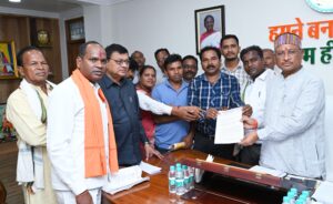 15. राजस्व मामलो में देरी होने से किसानो को काफी परेशानी उठाना पड़ता है इस समस्या का समाधान हेतु नियमित शिविर का आयोजन किया जाए । इसके साथ ही सीएसईबी में रोजगार मुआवजा जैसी मांगो पर पृथक से मांगपत्र दिया गया है ।