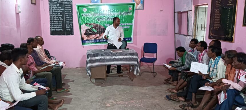 NOW HINDUSTAN कोरबा/गरियाबंद 22 जून कृषि विभाग द्वारा सॉइल हेल्थ कार्ड योजना के अंतर्गत ग्राम कदलीमुडा में मृदा परीक्षण के माध्यम से उर्वरको का संतुलित उपयोग विषय पर 21 और 22 जून को दो दिवसीय कृषक प्रशिक्षण का आयोजन किया गया। जिसमें कृषि अधिकारियों द्वारा मृदा नमूना लेने की विधि एवं मृदा परीक्षण से खाद एवं उर्वरक का संतुलित उपयोग कर जमीन की उर्वरता को बनाए रखने के बारे में किसानों को बताया गया। साथ ही कैसे अधिक उत्पादन लिया जा सकता है, इसके बारे में भी कृषकों को विस्तृत रूप से बताया गया। इसके अलावा असंतुलित उर्वरक के उपयोग से खेत को होने वाले दुष्प्रभाव से भी कृषकों को अवगत कराया गया।