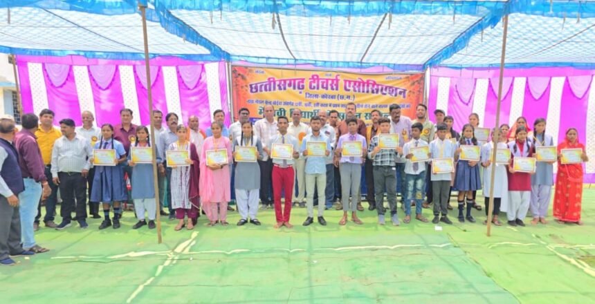 छत्तीसगढ़ टीचर्स एसोसिएशन के जिला अध्यक्ष मनोज चौबे के नेतृत्व में कटघोरा विधायक प्रेमचंद पटेल व दुष्यंत शर्मा जी एवं सभी अतिथियों को मोमेंटो भेंट किया गया । इस अवसर पर उपस्थित सभी मेधावी विद्यार्थियों, उनके माता – पिता एवं उनके शिक्षकों को शुभकामनाएं दी।