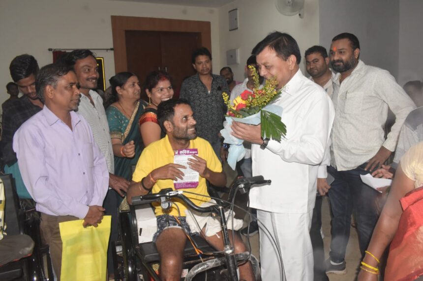 NOW HINDUSTAN कोरबा 09 अगस्त समाज कल्याण विभाग द्वारा आज जिले के 12 दिव्यांगजनों को मोटराइज्ड ट्राइसाइकल, इलेक्ट्रॉनिक व्हील चेयर प्रदान किया गया। कलेक्ट्रेट परिसर में आयोजित कार्यक्रम में मुख्य अतिथि लखनलाल देवांगन, उद्योग, वाणिज्य एवं श्रम मंत्री ने सभी दिव्यांगजनों को मोटराइज्ड ट्राइसाइकल अपने हाथों से प्रदान किया।