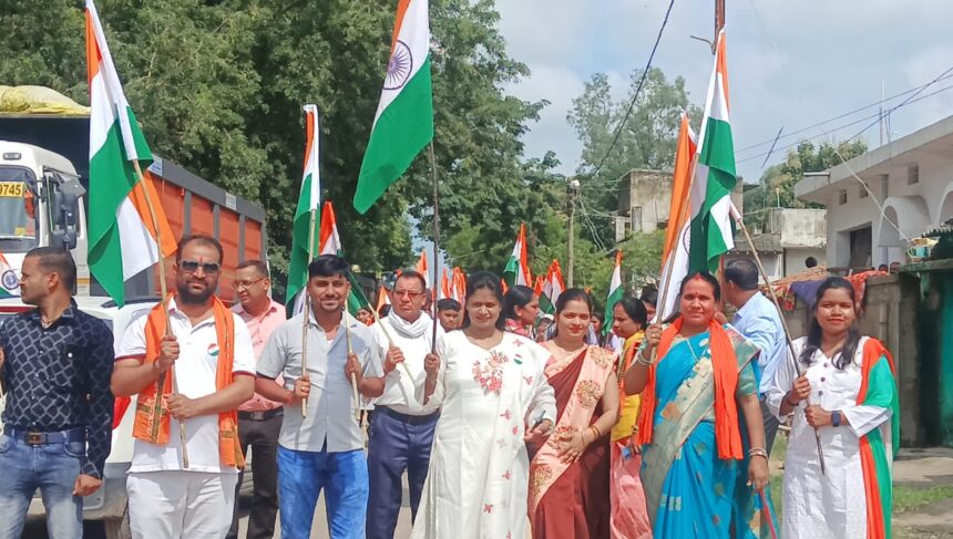 NOW HINDUSTAN korba हर घर तिरंगा अभियान के तहत जिले में देशभक्ति से प्रेरित विभिन्न गतिविधियों का आयोजन किया जा रहा है । इसी कड़ी में मंगलवार को बांकीमोंगरा नगर में तिरंगा यात्रा निकाली गई , सर्वे प्रथम भव्य तिंरगा यात्रा में शामिल लोग बांकीमोंगरा के इंदिरा नगर चौक में एकत्रित हुए वहां से पैदल देशभक्ति गीत के धुन पर रवाना हुए और इंदिरा नगर से सोमवारी बाजार , जंगल साईड मुख्य चौक होते हुए सनसाईन स्कूल , सतर्रा मोड़ से वापस पुनः मुख्य चौक पहुंचकर कार्यक्रम को समापन किया गया ।