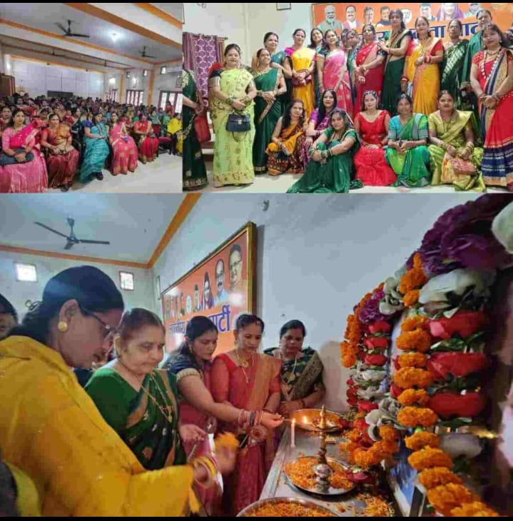 NOW HINDUSTAN korba. भारतीय जनता पार्टी महिला मोर्चा ने आज जिला कार्यालय कोरबा में सावन उत्सव बहुत ही धूमधाम से मनाया जिसमें कोरबा जिले के आदरणीय पूर्व सांसद स्व. श्री बंशी लाल महतो जी की धर्मपत्नी श्रीमती कौशल्या महतो जी का मुख्य अतिथि के रूप में आशीर्वाद व मार्गदर्शन प्राप्त हुआ।
