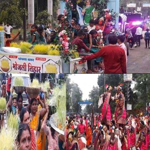 भोजली त्यौहार के मौके पर गाजा बाजा और राउत नाचा के साथ पुरुषों, महिलाएं और युवतियों ने भोजली की टोकरियां सिर पर रखकर तालाब किनारे पहुंची और विसर्जन किया गया। सभी पारंपरिक रस्मों के साथ तालाब में भोजली का विसर्जन किया गया।