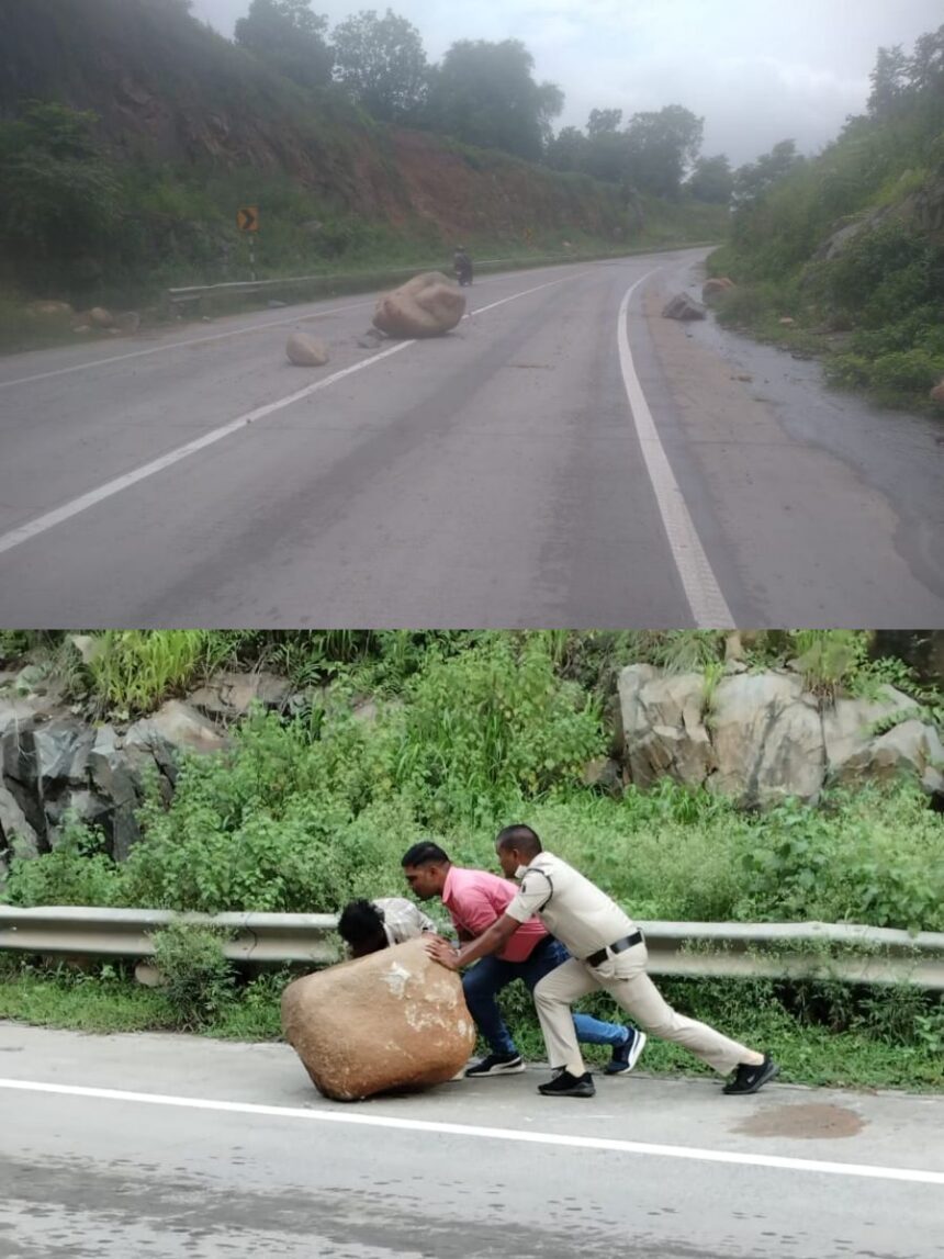 NOW HINDUSTAN कोरबा जिले में बीते कुछ समय से लगातार हो रही भारी बारिश का असर अब पहाड़ों पर पड़ने लगा है। कटघोरा- अंबिकापुर मार्ग NH-130 गुरसिया पुल के पास अचानक पहाड़ों से बड़ी मात्रा में मलबा नेशनल हाईवे पर आकर गिर गया। हालांकि, इस दौरान कोई जनहानि नहीं हुई। घटना की सूचना बांगो पुलिस प्रभारी लक्ष्मण खुटे को मिलते ही पुलिस मौके पर पहुंची आरक्षक अशोक खरे ने लोगों के मदद से मलबा हटाया गया।