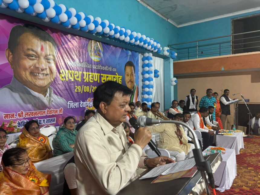 NOW HINDUSTAN कोरबा। बालोद स्थित टाऊन हॉल में जिला देवांगन समाज के नवनिर्वाचित पदाधिकारियों के शपथ ग्रहण समारोह में मुख्य अतिथि के रूप में प्रदेश के वाणिज्य उद्योग और श्रम मंत्री लखन लाल देवांगन शामिल हुए।