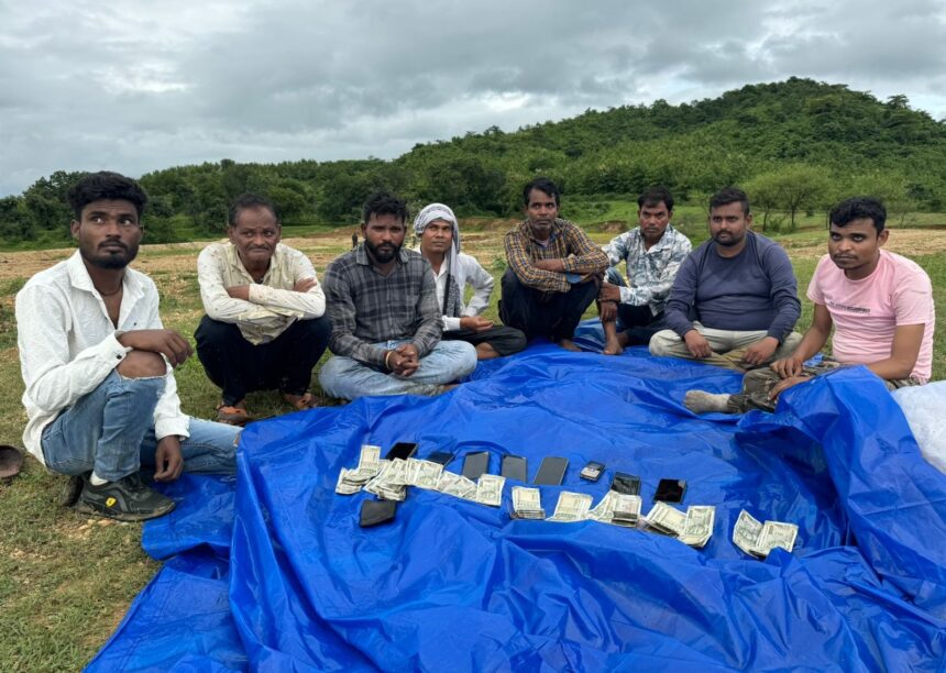 जानकारी के अनुसार मुखबिर सूचना प्राप्त हुई कि गिधौरी पहरीपारा जंगल में कुछ लोग रुपये पैसों का दांव लगाकर 52 पत्ती ताश जुआ खेल रहे हैं, उक्त सूचना को तत्काल संज्ञान में लेते हुए वरिष्ठ अधिकारियों के मार्गदर्शन में टीम गठित कर गिधौरी पहरीपारा जंगल में पहाड़ी के ऊपर जुआ फड़ में रेड की कार्यवाही की गई। पुलिस को देखकर वे भागने लगे जिन्हें दौड़ाकर पुलिस टीम द्वारा 8 व्यक्ति को पकड़ने में सफलता मिली है। जुआ फड़ से नगदी रक़म 62500.00 सहित 8 नग मोबाइल जप्त किया गया है। अन्य जो पुलिस टीम को देखकर भागे है, उनका पता तलाश किया जा रहा है। उरगा पुलिस की असामाजिक तत्वों पर कार्यवाही लगातार जारी रहेगी।