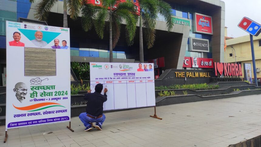 शासन के दिशा-निर्देशों के तहत कोरबा जिला कलेक्टर अजीत वसंत के मार्गदर्शन एवं निगम आयुक्त व जिला पंचायत सीईओ सुश्री प्रतिष्ठा ममगाई के दिशा-निर्देशन में स्वच्छता ही सेवा अभियान के अंतर्गत स्वच्छता पखवाडे़ का आयोजन किया जा रहा है। इसके अंतर्गत स्वच्छता में भागीदारी के विभिन्न सेवा कार्यो व कार्यक्रमों के साथ-साथ स्वास्थ्य केंद्रों, विद्यालयों, आंगनबाड़ी केंद्रों, सार्वजनिक स्थलों, आवासीय व व्यवसायिक परिसरों, स्ट्रीट फुडजोन, वेंडर जोन सहित अन्य स्थलों पर विशेष स्वच्छता कार्यक्रम संचालित किए जा रहे हैं।