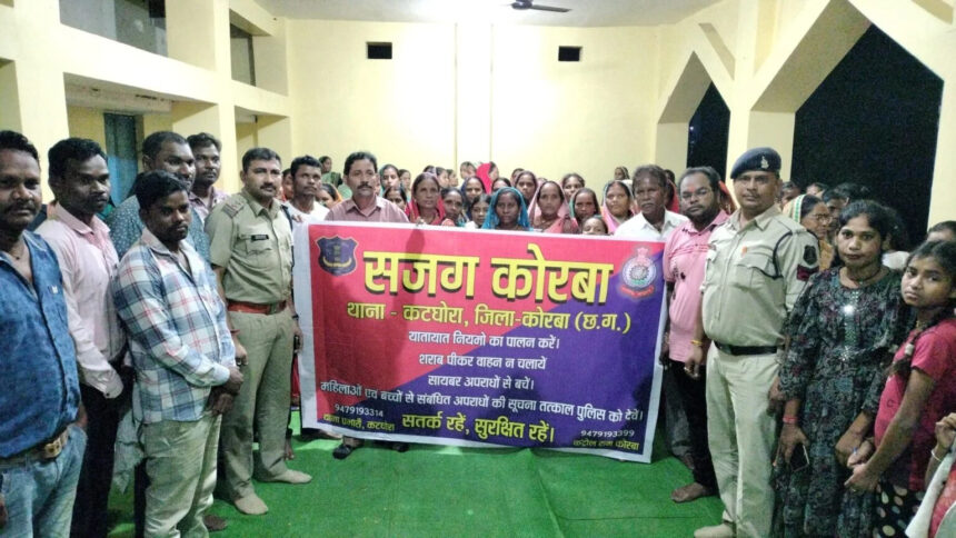थाना कटघोरा अंतर्गत ग्राम लोतलोता में कटघोरा पुलिस के द्वारा “सजग कोरबा अभियान” चलाया गया। उक्त कार्यक्रम में थाना कटघोरा प्रभारी धर्मनारायण तिवारी अपने कर्मचारी सहित देर शाम ग्राम लोतलोता पहुचे, जहां गाँव के बने मंच के पास चौपाल आयोजित की गई। जहां बड़ी संख्या में महिलाएं, बच्चे व पुरूष उपस्थित रहे। कार्यक्रम में थानेदार धर्मनारायण तिवारी का स्वागत ग्रामीणों ने पुष्पगुच्छ से किया गया। ततपश्चात कार्यक्रम आगे बढ़ाया गया। कार्यक्रम में शिरकत कर रहे थानेदार धर्मनारायण तिवारी ने लोतलोता के ग्रामीणों को सजग कोरबा के तहत जागरूक किया। इन्होंने बताया कि ग्रामीण क्षेत्रों में अवैध मादक द्रव्य पदार्थ का कारोबार फल-फूल रहा है, जिस कारण ग्राम की युवा पीढ़ी व पुरुष वर्ग मादक द्रव्य पदार्थ का सेवन कर अपना विनाश कर रहे हैं, मादक द्रव्य पदार्थ के कारण अक्सर उनके घरों में कलह का माहौल बना रहता है आय का स्रोत बंद हो जाता है, इसलिए गाँव को मादक द्रव्य पदार्थ मुक्त करना चाहिए ताकि गाँव का माहौल शांतिपूर्ण बना रहे। थानेदार धर्मनारायण तिवारी ने ग्रामीणों को बताया कि अगर ग्राम मे कोई मादक द्रव्य पदार्थ पीने या बेचने का काम करे तो इसकी सूचना पुलिस को दे, पुलिस ऐसे लोगो पर कड़ी से कड़ी कार्यवाही करेगी।