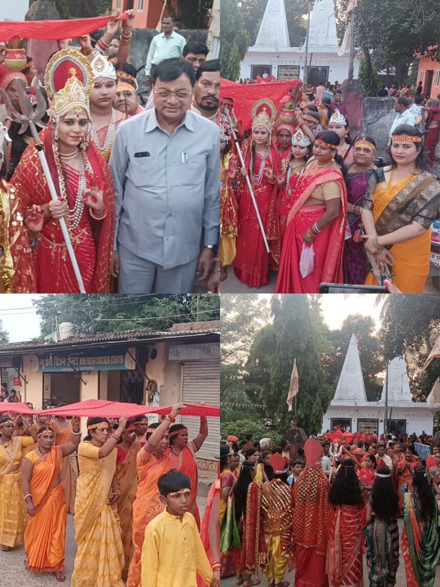 NOW HINDUSTAN. Korba. शारदीय नवरात्र के चौथे दिन वार्ड क्रमांक 20 से भव्य चुनरी यात्रा निकाली गई जिसमें बड़ी संख्या में वार्ड वासी शामिल हुए। आरा मशीन शिव मंदिर से नवरात्रि के अवसर पर माता की चुनरी की यात्रा निकल गई। बड़ी संख्या में महिलाओं ने हाथों में चुनरी लेकर आरा मशीन शिव मंदिर से हेलीपैड स्थित शिव मंदिर तक मां के जयकारों के साथ चुनरी लेकर निकाली।