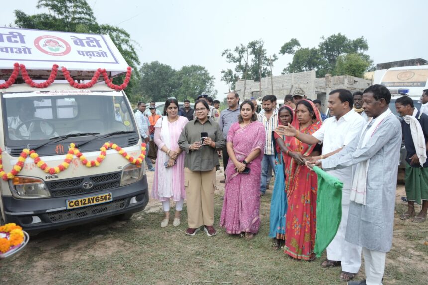 विकासखंड कोरबा के ग्राम नकिया में जिला स्तरीय जनसमस्या निवारण शिविर में “बेटी बचाओ-बेटी पढ़ाओं” जन जागरूकता अभियान अंतर्गत जागरूकता रथ को जनप्रतिनिधि जिला पंचायत सदस्य संदीप कंवर एवं सरगांव सरपंच श्रीमती संगीता पैकरा द्वारा हरी झंडी दिखाकर रवाना किया गया।