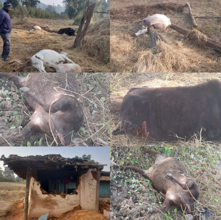 बताया जा रहा हैं की ग्राम सिर्री के बहरापारा निवासी के दुधारू पशु को हाथियों ने मार दिया है, जिससे किसान को काफी नुकसान हुआ है। हाथियों के इस आतंक से अन्य ग्रामवासी भी अपने जान-माल और मवेशियों के जान को लेकर चिंता व दहशत में हैं।