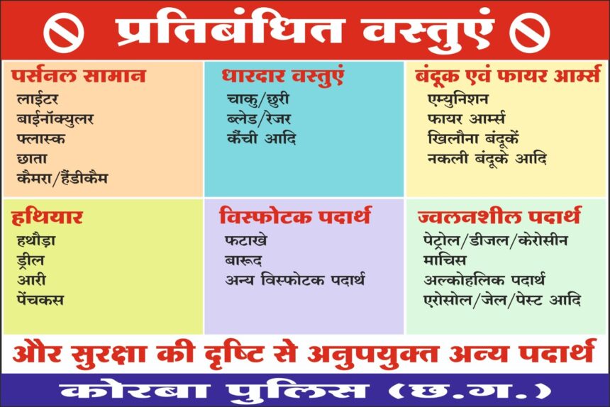 NOW HINDUSTAN. Korba. प्रदेश के मुख्यमंत्री विष्णु देव साय मुख्यमंत्री छत्तीसगढ़ शासन को ‘Z+’ (Z Plus) श्रेणी की सुरक्षा मिली है। उनका जिला कोरबा प्रवास कार्यक्रम 12 दिसंबर को संभावित है। जिसमें पुलिस विभाग की ओर से एडवाइज़री एवं प्रतिबंधित सामग्री की सूची जारी कर लोगों से निवेदन किया गया है की कार्यक्रम में शामिल होना है तो ये सामान अपने साथ ना लाए।