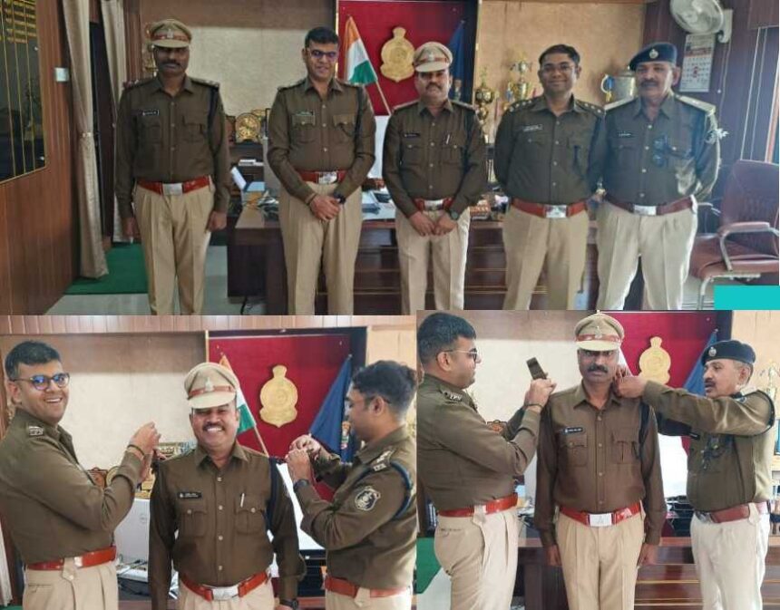 NOW HINDUSTAN. Korba. पुलिस विभाग द्वारा समय-समय पर पदोन्नति देकर जवानों का हौसला बढ़ाया जाता है। उनके कंधो में लगे सितारे उनकी जिम्मेदारियों को बढ़ा देते है। पुलिस विभाग 24 घंटे लोगो की सेवा में समर्पित रहते हैं। घर परिवार से दूर अर्ध रात्रि को भी ड्यूटी करते जवानों को कंधो और बाहों में लगे सितारे उनकी कड़ी मेहनत को बयां करते है।