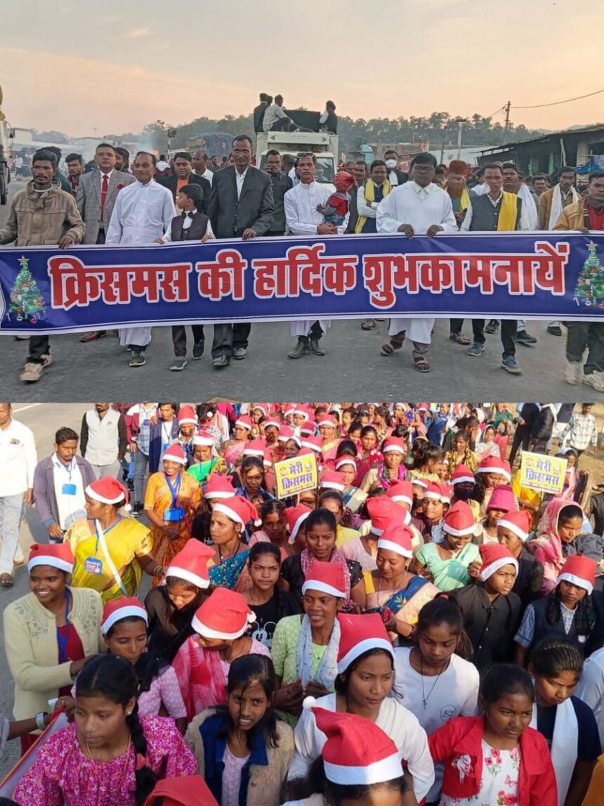 NOW HINDUSTAN. Korba. मसीह संगठन पोड़ी ब्लॉक की ओर से क्रिसमस रैली का आयोजन किया गया जिसमें करीब 1500 लोगों ने भाग लिया। यह रैली प्रार्थना भवन नवापारा से चोटिया बस स्टैंड होते हुए क्रिश्चियन चर्च चोटिया में समापन की गई। रैली की अध्यक्षता में रेवरेंट अमृतलाल एवं संगठन के 30 पास्टर प्रचारक गण रहे।
