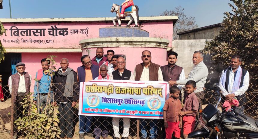 NOW HINDUSTAN. Korba. बिलासपुर के समीपवर्ती ग्राम कर्रा दोमुहानी में हस्ताक्षर अभियान एवं सम्मान समारोह आयोजित किया गया। छत्तीसगढ़ी राजभाषा परिषद् के अध्यक्ष डाॅ विवेक तिवारी ने जानकारी दी कि परिषद् द्वारा छत्तीसगढ़ी को आठवीं अनुसूची में शामिल करने के लिए हस्ताक्षर अभियान को सभी ओर सफलता मिल रही है। इसी क्रम में ग्राम कर्रा में सम्मान, विचार एवं काव्य गोष्ठी का आयोजन किया गया। जिसमें सुप्रसिद्ध समाजसेवी बद्री कैवर्त्य का सम्मान किया गया। यह आयोजन वरिष्ठ साहित्यकार डाॅ राघवेन्द्र कुमार दुबे बिलासपुर प्रांतीय अध्यक्ष तुलसी साहित्य अकादमी छत्तीसगढ़ इकाई बिलासपुर के मुख्य आतिथ्य, समाजसेवी बद्री प्रसाद कैवर्त की अध्यक्षता एवं वरिष्ठ साहित्यकार अंजनी कुमार तिवारी सुधाकर, शत्रुहन जैसवानी, शीतल प्रसाद पाटनवार एवं आशीष श्रीवास के विशिष्ट आतिथ्य में सम्पन्न हुआ।