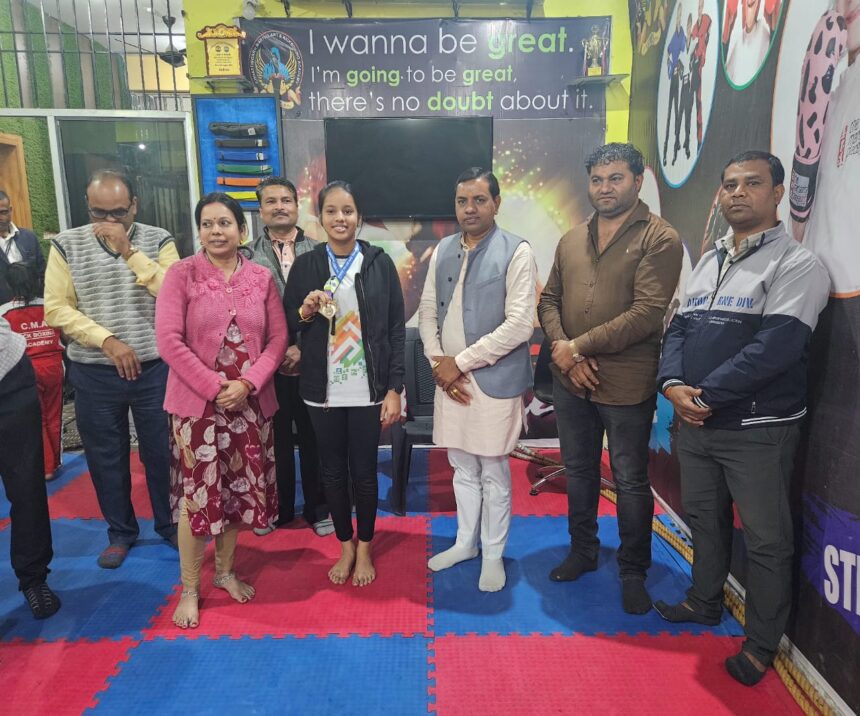 NOW HINDUSTAN. Korba. विष्णुदेव सरकार के सुशासन के 1 वर्ष पूर्ण होने के अवसर पर आयोजित मुख्यमंत्री कप राज्य स्तरीय ओपन किकबॉक्सिंग प्रतियोगिता-2025 में सीएमए किकबॉक्सिंग एकेडमी कोरबा के होनहार खिलाड़ियों ने 70 स्वर्ण पदक जीतकर प्रदेश में पहला स्थान प्राप्त किया। टीम ने मुख्यमंत्री ट्रॉफी जीती। मंगलावार को एकेडमी में आयोजित सम्मान समारोह मे नरेंद्र देवांगन पार्षद नगर पालिक निगम कोरबा एवं क्रीड़ा भारती छग के संगठन मंत्री कौशलेंद्र ने खिलाड़ियों को मेडल पहनाकर सम्मानित किया।