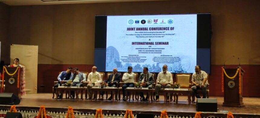 NOW HINDUSTAN. Korba. पं. रविशंकर शुक्ल विश्वविद्यालय, रायपुर के सहयोग से 46वीं वार्षिक सम्मेलन (इतिहास और संस्कृति सोसायटी – HCS), 55 वीं वार्षिक सम्मेलन (भारतीय पुरातत्व सोसायटी – IAS) और 50 वीं वार्षिक सम्मेलन (भारतीय समाज प्रागैतिहासिक और चतुर्थक अध्ययन – ISPQS ) का भव्य आयोजन 07 से 09 मार्च 2025 तक किया गया। इस तीन दिवसीय सम्मेलन का मुख्य विषय “छत्तीसगढ़ और इसके आस-पास के क्षेत्र की पुरातत्वविद्या ” है, जिसमें देशभर से प्रतिष्ठित पुरातत्वविदों, इतिहासकारों और शोधकर्ताओं भाग लिया।