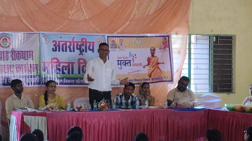 NOW HINDUSTAN. Korba. बाल विवाह मुक्त भारत अभियान के तहत महिला एवं बाल विकास परियोजना बरपाली द्वारा बरपाली स्थित समरसता भवन में जागरूकता शिविर का आयोजन किया गया जिसमें मुख्य अतिथि के रूप मनोज झा उपाध्यक्ष जनपद पंचायत करतला, नीता यादव जनपद सदस्य बरपाली, राकेश यादव प्रवीण उपाध्याय संजू वैष्णव, तुलसी रात्रे, बाल संरक्षण अधिकारी कोरबा दया दास मानिकपुरी, परियोजना अधिकारी बरपाली कीर्ति जैन,उपस्थित रहे कार्यक्रम में सर्वप्रथम भारत माता एवं छत्तीसगढ़ महतारी के तेल चित्र पर श्रीफल पुष्प अर्पण कर कार्यक्रम का