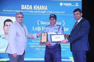 NOW HINDUSTAN. वेदांता समूह की कंपनी भारत एल्यूमिनियम कंपनी लिमिटेड (बालको) ने सुरक्षा कर्मचारियों के लिए ‘बड़ा खाना’ कार्यक्रम का आयोजन किया। इसमें मुख्य अतिथि के रूप में बालको के मुख्य कार्यकारी अधिकारी एवं निदेशक श्री राजेश कुमार उपस्थित थे। कार्यक्रम में 400 से ज्यादा लोग एकत्रित हुए। सीईओ ने आपाकालिन परिस्थितियों से निपटने में सुरक्षा कर्मियों के समर्पण की सराहना करते हुए उनको सम्मानित किया। मनमोहक सांस्कृतिक कार्यक्रम का आयोजन भी किया गया।