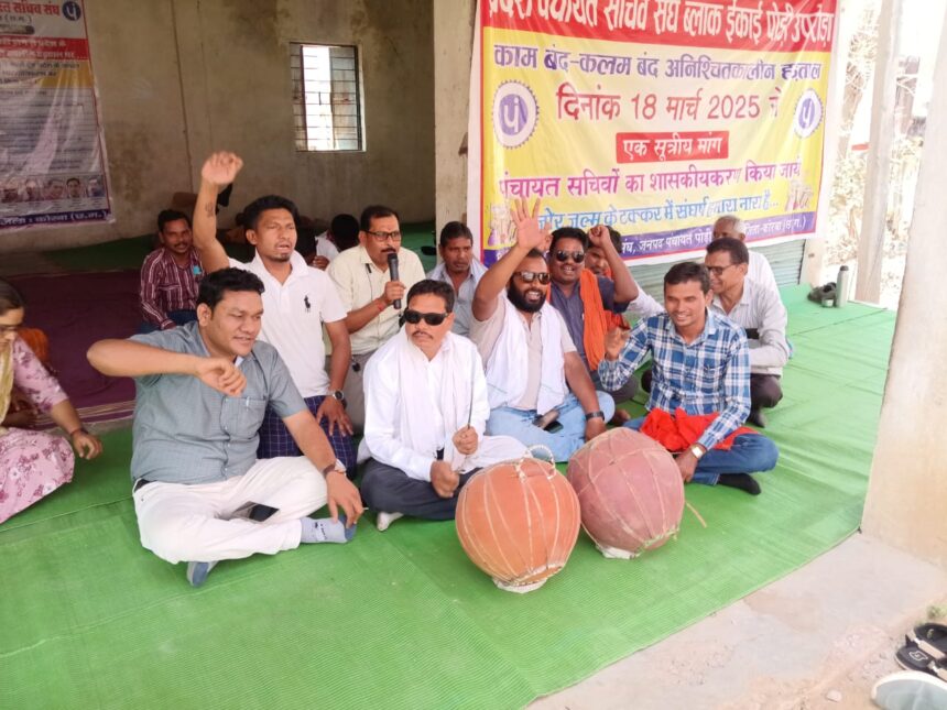 NOW HINDUSTAN- कोरबा जिले में पंचायत सचिवों की हड़ताल लगातार तेज होती जा रही है। लगभग एक महीने से चल रही इस हड़ताल के दौरान सचिवों ने आज एक अनोखे तरीके से प्रदर्शन किया। चरण बद्ध तरीके से चल रहे आंदोलन के तहत मंगवार को धरना स्थल पर सचिवों ने नगाड़ा बजाकर अपनी आवाज सरकार तक पहुंचाने का प्रयास किया। उनका कहना है कि वे अपनी शासकीय मांगों को लेकर शांतिपूर्ण तरीके से प्रदर्शन कर रहे हैं, लेकिन शासन-प्रशासन की ओर से कोई ठोस पहल नहीं की जा रही है, जो निराशाजनक है।