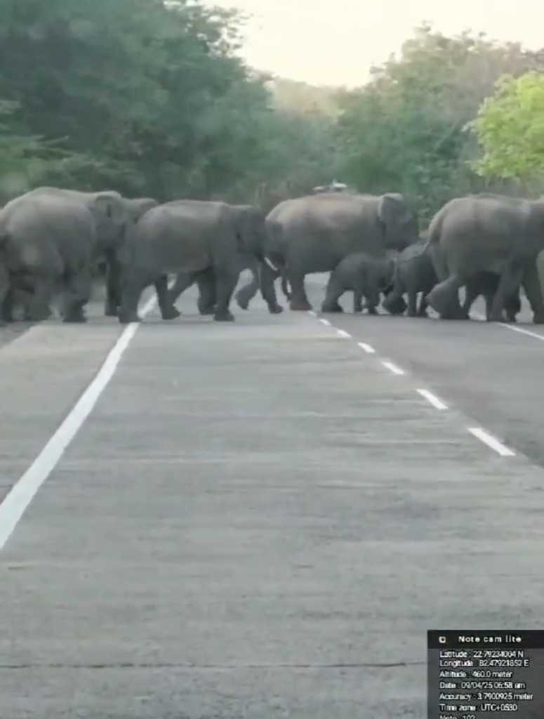 NOW HINDUSTAN. कोरबा-अंबिकापुर राष्ट्रीय राजमार्ग में ग्राम चोटिया के पास सड़क को 45 हाथियों का दल पार करता दिखा। हाथियों के इस दल में 8 बेबी एलिफेंट भी शामिल हैं। जिसकी वजह से मुख्य मार्ग पर जाम लग गया। हाथियों के इस दल को खदेड़ने वन अमला मौके पर मौजूद रहा।