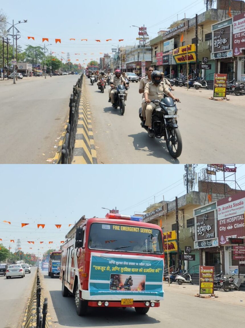 इसी कड़ी में कोरबा दमकल विभाग द्वारा जन जागरूकता को लेकर वाहनों की रैली निकाली गई जिसमें फायर ब्रिगेड के वाहन और चालक शामिल हुए। जिला सेनानी पी बी सिदार ने बताया कि हर वर्ष इस प्रकार का आयोजन किया जाता है यह आयोजन एक सप्ताह तक चलता है । जिसमें विभिन्न कार्यक्रम आयोजित किए जाते हैं जिसके माध्यम से लोगों को फायर सेफ्टी की जानकारी और उसके बचाव के तरीके बताए जाते हैं।