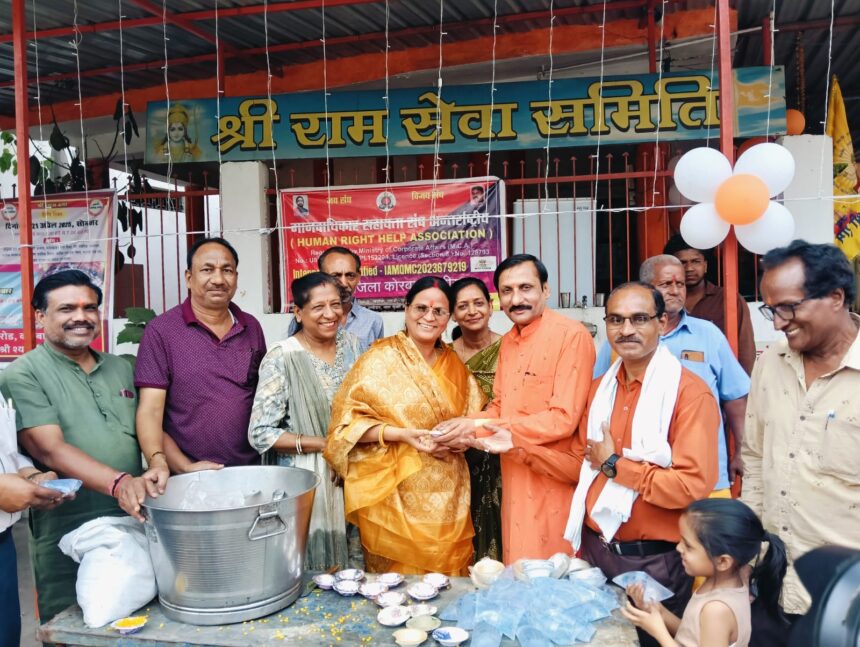 NOW HINDUSTAN. Korba. मानवाधिकार सहायता संघ अंतरराष्ट्रीय के राष्ट्रीय अध्यक्ष सोनू सिंह भारत के निर्देशानुसार एवं रामू राव प्रदेश अध्यक्ष – छत्तीसगढ़ के मार्गदर्शन में राजकुमार मोदी जिला अध्यक्ष- कोरबा की टीम द्वारा दिनाँक 12/04/2025 को श्री शिव , हनुमान मंदिर ,पावर हाउस रोड कोरबा में प्रातः 11.00 बजे पूजा आरती कर भोग लगाया गया तत्पश्चात दोपहर 2.30 बजे तक श्री हनुमान जन्मोत्सव के अवसर पर लगभग 2000 भक्तों और राहगीरों को प्रसाद एवं जल का वितरण किया गया।एवं उपस्थित सदस्यों को प्रसाद का पैकेट प्रदान किया गया l