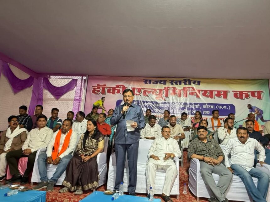 बालको के डॉ. भीमराव अंबेडकर खेल मैदान में छत्तीसगढ़ हॉकी संघ के मार्गदर्शन व जिला हॉकी संघ के तत्वाधान में आयोजित स्पर्धा में बिलासपुर, जशपुर, रायगढ़, लैलूंगा, दुर्ग, राजनांदगांव, जांजगीर-चांपा सहित कोरबा व अन्य जिलों से आए खिलाड़ियो के बीच राज्य स्तरीय एल्युमिनियम कप स्पर्धा का खिलाड़ियो से परिचय प्राप्त कर व हॉकी स्टिक चलाकर शुभारंभ किया।
