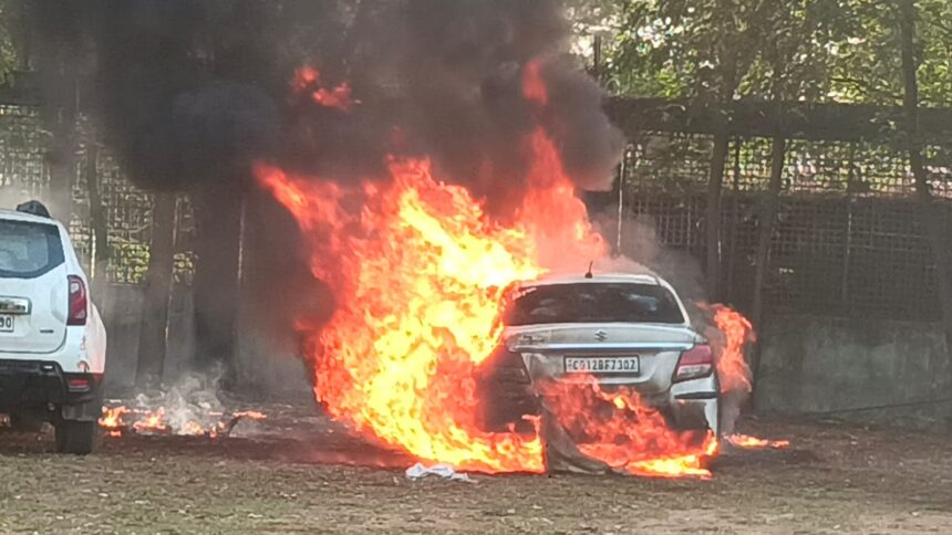 NOW HINDUSTAN. Korba. जिले से बड़ी खबर सामने आ रही है जहां कोरबा के बालको थाने में आगजनी की घटना सामने आई है। मंगलवार की शाम एकाएक बालको थाना में आग की लपटों के साथ गहरा काला धुआं उठते हुए नज़र आया। बालको थाना में खड़ी एक स्विफ्ट डीजयर कर में अचानक तेज आवाज के साथ आग की लपटे उठने लगी, थाना में मौजूद पुलिस कर्मियों की नजर जैसे ही आगजनी इस घटना पर पड़ी थाना परिसर में हड़कंप मच गया। देखते ही देखते कर आग की लपेटे में समा गई।