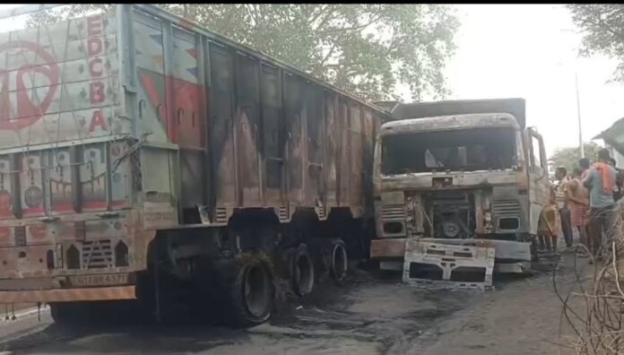 NOW HINDUSTAN. कोरबा अंचल में घटित एक भीषण दुर्घटना में दो ट्रकों की टक्कर के बाद आग लग गई। इस हादसे में एक ट्रक चालक कैबिन में फंसकर जिंदा जल गया, जबकि दूसरा ट्रक चालक घायल हो गया। मृतक ड्राइवर की पहचान 30 वर्षीय परमेश्वर मांझी के रूप में की गयी हैं, जो पत्थलगांव का निवासी था और कोरबा टी.पी. नगर से रानी अटारी जा रहा था। जानकारी के अनुसार दुर्घटना दर्री थाना क्षेत्र के गेरवाघाट पुल के आगे रात्रि 3 बजे घटित हुई हैं।