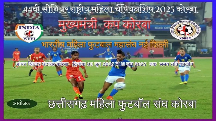 NOW HINDUSTAN. कोरबा अखिल भारतीय महिला फुटबॉल प्रतियोगिता का आयोजन कोरबा में 5वीं बार किया जा रहा है। यह रात्रिकालीन फुटबॉल चैंपियनशिप 18 मई से 25 मई तक घंटाघर ओपन थियेटर मैदान में संपन्न होनी थी, किंतु राज्य शासन द्वारा घोषित ग्राम सुराज कार्यक्रम के कारण इसकी तिथि में परिवर्तन प्रस्तावित किया गया है। अब यह आयोजन 05 जून से 11 जून 2025 तक आयोजित किया जाएगा।