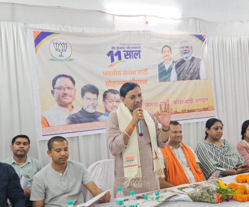 NOW HINDUSTAN. Korba. 11 साल बेमिसाल अभियान अंतर्गत वार्ड क्रमांक 18 कोहड़िया चारपारा स्थित सराईपारा सामुदायिक भवन में एक भव्य मोहल्ला चौपाल एवं संकल्प पत्र शपथ कार्यक्रम का आयोजन किया गया।