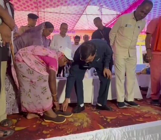 NOW HINDUSTAN. Korba. कोरबा। वाणिज्य, उद्योग एवं श्रम मंत्री लखनलाल देवांगन कटघोरा उपजेल परिसर में आयोजित वन महोत्सव एवं चरण पादुका वितरण कार्यक्रम में शामिल हुए। इस अवसर पर उन्होंने तेंदूपत्ता संग्राहकों को स्वयं चरण पादुका पहनाकर सम्मानित किया।