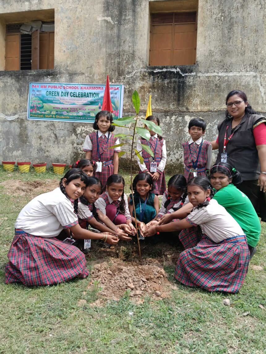 NOW HINDUSTAN. Korba. डीएवी मुख्यमंत्री पब्लिक स्कूल खरमोरा कोरबा में एक पेड़ मां के नाम अभियान के तहत हरित दिवस समारोह का आयोजन बड़े ही हर्षोल्लास के साथ मनाया गया। इस कार्यक्रम की अध्यक्षता विद्यालय के प्राचार्य महोदय हेमंतो मुखर्जी ने किया। इस कार्यक्रम के मुख्य अतिथि प्रताप सिंह कंवर पार्षद वार्ड क्रमांक 35 खरमोरा तथा अन्य सभी विशिष्ट अतिथियों में दिनेश राज प्रेस प्रतिनिधि दैनिक भास्कर, नागेंद्र श्रीवास, क्राइम रिपोर्टर हरिभूमि, श्रीमती प्रतिमा सरकार ग्रैंड न्यूज़ चैनल, बसंत कुमार प्रेस प्रतिनिधि पत्रिका तथा श्यामल मल्लिक वरिष्ठ अधिवक्ता, सत्र न्यायालय कोरबा का तिलक लगाकर तथा स्वागत गीत गाकर अतिथियों का स्वागत किया गया।