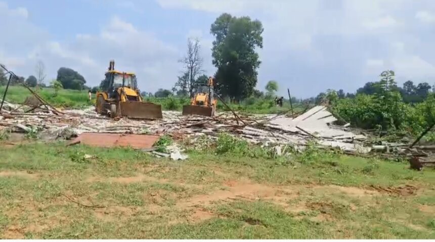 NOW HINDUSTAN. Korba. धरमजयगढ़ कुछ दिनों पूर्व NOW HINDUSTAN NEWS में रायगढ़ जिले के धरमजयगढ़ में बड़े पैमाने पर बने अवैध पोल्ट्री फार्म की खबर चलाई थी । जिसे संज्ञान में लेते हुए प्रशासन ने कार्रवाई करते हुए शनिवार को बुलडोजर के माध्यम से बने अवैध पोल्ट्री फार्म को ध्वस्त कर दिया । गौरतलब है कि बिलासपुर से लेकर रांची तक भारतमाला के तहत सड़क का निर्माण किया जा रहा है। जिसके तहत धर्मजयगढ़ से भी होकर सड़क को गुजारनी है और इस सड़क के निर्माण में आने वाली जमीनों का मुआवजा दिया जाना है । अब खेल यहीं से शुरू होता है अधिक मुआवजा प्राप्त करने के उद्देश्य से निर्माण क्षेत्र में आने वाली जमीनों में रातो रात बड़े-बड़े पोल्ट्री फार्म बोरिंग आदि करवा दिए जा रहे हैं ताकि शासन से अधिक से अधिक मुआवजा लिया जा सके ।