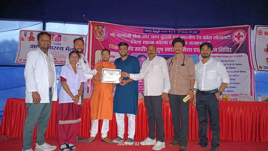 NOW HINDUSTAN. Korba. छत्तीसगढ़ शासन के आयुष विभाग के दिशा-निर्देश और जिला प्रशासन के सहयोग से श्री बालाजी सेवा संघ एवं भारतीय रेड क्रॉस सोसायटी के संयुक्त तत्वावधान में ग्राम बुंदेली में विकासखंड स्तरीय आयुष स्वास्थ्य मेला और रक्तदान शिविर का भव्य आयोजन किया गया।