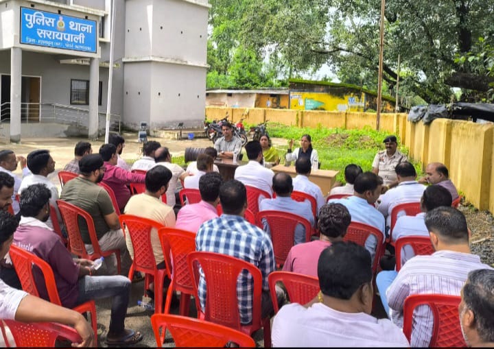 NOW HINDUSTAN. Korba. सरायपाली थाना परिसर में आगामी पर्व ईद और गणेश विसर्जन को लेकर शांति समिति की महत्वपूर्ण बैठक आयोजित की गई जिसमें अनुविभागीय अधिकारी राजस्व अनुपमा आनंद, अनुविभागीय अधिकारी पुलिस श्रीमती ललिता मेहेर, तहसीलदार श्रीधर पंडा , उप निरीक्षक असरार अली उपस्थित थे जिन्होंने आए सभी प्रतिनिधियों के साथ चर्चा की एवं आश्वासन दिया गया कि प्रशासन एवं पुलिस की तरफ से त्योहार के विषय में पूरी तैयारी कर ली गई है, तथा कानून तोड़ने वालों लोगों के ऊपर पुलिस नजर बनाई हुई है कानून तोड़ते पाए जाने पर कड़ी से कड़ी कार्यवाही की जाएगी एवं पुलिस बल लगाकर यातायात व्यवस्था सुचारु रखा जाएगा।