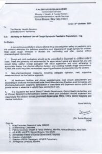मध्यप्रदेश में कफ सिरप पीने से होने वाली मौत के बद अब छत्तीसगढ़ सरकार ने भी संज्ञान में लेते हुए संचालक स्वास्थ्य विभाग द्वारा एडवाइजरी जारी कर दी गई है। जिसमे सभी शासकीय और निजी चिकित्सकों को निर्देष दिया गया है कि बिना जांच के कफ सिरप न दे । वही मेडिकल स्टोर संचालको को भी निर्देश दिया गया है कि बिना डॉक्टर के पर्ची के दवा न दिया जाए।