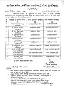 NOW HINDUSTAN. KORBA. कोरबा जिले में प्रशासनिक फेरबदल करते हुए कोरबा। कलेक्टर अजीत बसंत ने तहसीलदारों के तबादले का आदेश जारी किया है। इस ट्रांसफर सूची में कई तहसीलदारों को नई जिम्मेदारियां सौंपी गई हैं। देखिये किसे कहां की मिली जिम्मेदारी ।