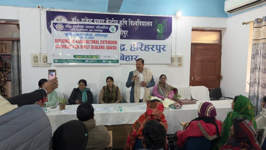 NOW HINDUSTAN. Korba. बिहार। राजापाकर /वैशाली सेवाओं में डिप्लोमा प्रशिक्षण कार्यक्रम का उद्घाटन डॉ अनिल कुमार सिंह, वरीय वैज्ञानिक एवं प्रधान, कृषि विज्ञान केन्द्र के दिशानिर्देश में माननीय विधायक श्री अवधेश सिंह के द्वारा दीप प्रज्वलित कर किया गया . इस कार्यक्रम का मुख्य उद्देश्य कृषि इनपुट डीलरों को खाद, बीज, कीटनाशक विक्रेता का प्रशिक्षित कर उन्हें पैरा-एक्सटेंशन पेशेवर बनाना है . ताकि वे किसानों को बेहतर और वैज्ञानिक सलाह दे सकें. जिससे कृषि उत्पादकता बढ़े. जल संरक्षण हो और ग्रामीण आजीविका में सुधार हो. साथ ही यह कोर्स बिना कृषि स्नातक की डिग्री के भी डीलरों को लाइसेंस लेने में मदद करता है।