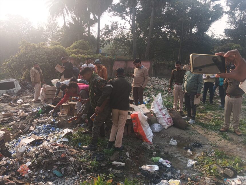 NOW HINDUSTAN. Korba /Bihar राजापाकर /वैशाली इस संबंध में जानकारी देते हुए उत्पाद अधीक्षक वैशाली ने बताया कि सबसे ज्यादा एक हजार लीटर स्प्रिट राजापाकर थाने में विनष्टीकरण किया जाना था. इसलिए पांच थाने से देसी विदेशी शराब को राजा पाकड़ थाने में मंगाकर विनष्टीकरण किया गया. पांच थानों में कटहरा थाना, जंदाहा थाना, गोरौल थाना, महुआ थाना एवं राजापाकर थाना शामिल है. कटहरा थाने में 5.5 लीटर देसी, 15.250 लीटर विदेशी, जंदाहा थाने से 60.375 लीटर विदेशी एवं 154 लीटर देशी, गोरौल थाने से विदेशी 25.875 लीटर, महुआ थाने से विदेशी 259. 8 लीटर, देसी 174.500 लिटर।