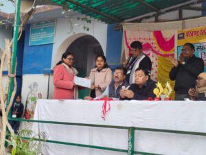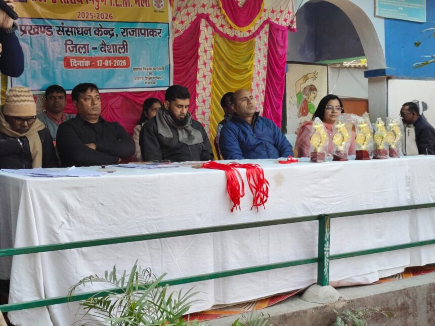 NOW HINDUSTAN. Korba. Bihar राजापाकर /वैशाली कार्यक्रम का दीप जलाकर उद्घाटन प्रखंड विकास पदाधिकारी सह प्रभारी प्रखंड शिक्षा पदाधिकारी सूर्य प्रताप सिंह द्वारा किया गया. कार्यक्रम में 13 सीआरसी से अनेक छात्र-छात्रा मेला में शामिल हुए.कुल पांच विषयो हिंदी ,अंग्रेजी, उर्दू ,गणित एवं पर्यावरण विज्ञान से एक-एक प्रतिभागी चुने गए. जिसमें जिन्हें प्रथम ,द्वितीय, तृतीय स्थान के लिए विजेता घोषित किया गया .जो जिला कार्यक्रम में भाग लेंगे. कार्यक्रम की अध्यक्षता सीआरसी समन्वयक सह प्रधानाध्यापक प्रभात कुमार चौधरी द्वारा किया गया एवं मंच संचालन मोहम्मद इफ्तिखार अहमद ने किया.।