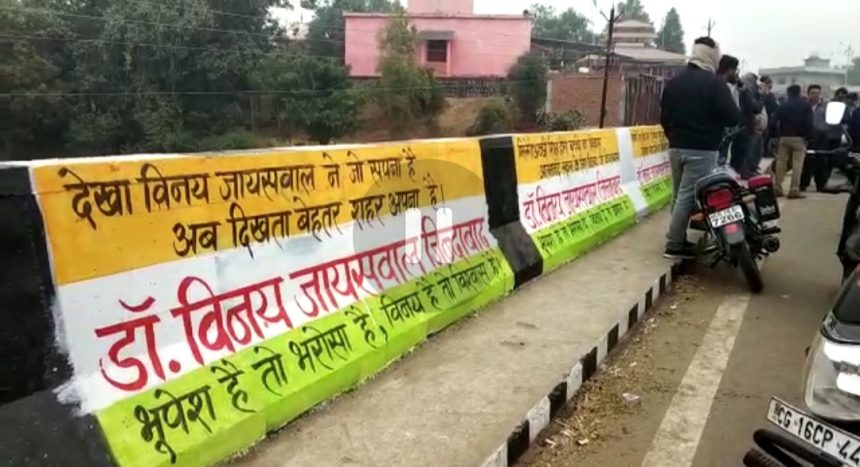 कोरबा NOW HINDUSTAN चुनाव से पहले ही चुनावी रंग दिखने लगा है जब मनेंद्रगढ़ में राष्ट्रीय राजमार्ग 43 में बने पुल में कांग्रेसी विधायक के प्रचार प्रसार वॉल पेंटिंग के विरोध में भाजपाईयों ने जमकर हल्ला बोल दिया। भाजपाई पुल की रेलिंग में की जा रही पेंटिंग को हटाने को लेकर अड़े रहे, साथ ही साथ कार्यवाही की मांग को लेकर विरोध प्रदर्शन करने लगे।