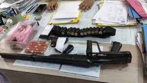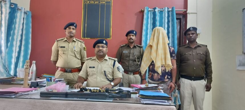 युवक के पास एक दो नाली बन्दुक 33जिंदा गोली 12 बोर 13खोखा 12 बोर पिस्टल नूमा एयर गण एक विदेशी शराब 180ml का एक। युवक का नाम बिकाश कुमार उर्फ विकास शुक्ला पिता प्रमोद कुमार शुक्ला, ग्राम तितरा वार्ड11 थाना -बरांटी वैशाली।बरांटी थानाध्यक्ष ने अपनी बहादुरी दिखाते हूए युवक को गिरफ्तार किया।