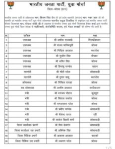 NOW HINDUSTAN. Korba. भारतीय जनता पार्टी के प्रदेशाध्यक्ष किरण सिंह देव एवं प्रदेश महामंत्री (संगठन) पवन साय जी की सहमति एवं भारतीय जनता पार्टी युवा मोर्चा प्रदेशाध्यक्ष राहुल टिकरिया के अनुमोदन एवं भारतीय जनता पार्टी कोरबा जिलाध्यक्ष गोपाल मोदी के अनुशंसा से भारतीय जनता युवा मोर्चा जिलाध्यक्ष वैभव शर्मा द्वारा भारतीय जनता युवा मोर्चा जिला कोरवा के पदधिकारी, कार्यसमिति सदस्य, एवं मंडल अध्यक्षों की घोषणा की गई। जिसमें अभिषेक सिंह को जिला कार्यालय सह प्रभारी भाजपा युवा मोर्चा बनाया गया।