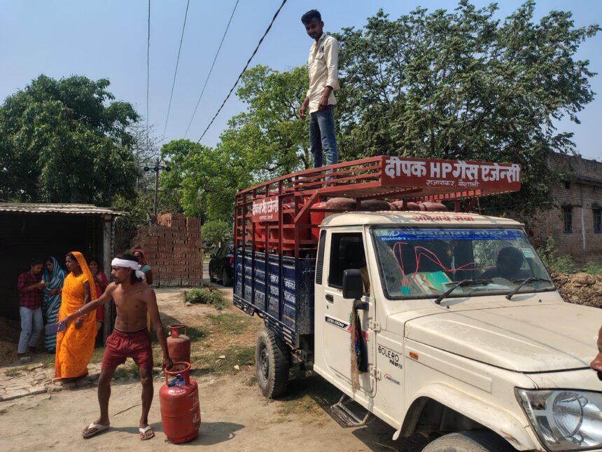 NOW HINDUSTAN. Bihar News-बीते कई दिनों से एलपीजी गैस की किल्लत से जूझ रहे उपभोक्ताओं अब राहत भरी खबर सामने आई है। लगातार हो रही परेशानी के बीच शुक्रवार को राजापाकर के ग्रामीण क्षेत्र में एक सकारात्मक पहल देखने को मिली, जब दीपक एचपी गैस एजेंसी की गाड़ी सीधे उपभोक्ताओं के दरवाजे तक गैस सिलेंडर की डिलीवरी देने पहुंची।