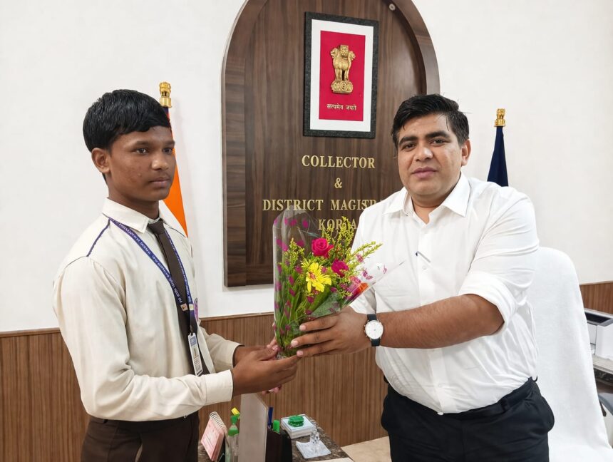 NOW HINDUSTAN. Korba. पीएम श्री एकलव्य आदर्श आवासीय विद्यालय, छुरीकला के लिए यह अत्यंत गौरव का क्षण है, जब कक्षा 10वीं के छात्र सार्थक तंवर का चयन प्रतिष्ठित युविका युवा विज्ञानी कार्यक्रम हेतु हुआ।इस उपलब्धि पर कोरबा कलेक्टर कुणाल दुदावत ने उन्हें सम्मानित किया।