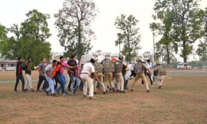 कोरबा NOW HINDUSTAN पुलिस विभाग अपने जवानों को चुस्त दुरुस्त बनाये रखने के लिए साथ ही समय समय पर बलवा रैली के साथ असामाजिक तत्वों पर लगाम लगाने के लिए ड्रिल अभ्यास किया जाता है इसी कड़ी में मंगलवार को पुलिस अधीक्षक कोरबा यू. उदय किरण के निर्देश पर नगर पुलिस अधीक्षक कोरबा विश्वदीप त्रिपाठी के द्वारा पुलिस लाइन कोरबा परेड ग्राउंड में क़ानून ववस्था के मद्देनज़र बलवा ड्रिल परेड का रिहर्सल किया गया।